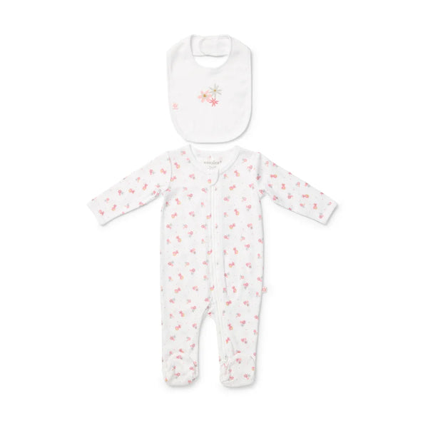This sweet Floral Zipsuit and Bib Set is the perfect gift to give this season for that special little girl. Featuring a long sleeve zipsuit with all over floral print in our premium soft 100% cotton, this set also comes with a bib with velcro closure and terry towelling back.